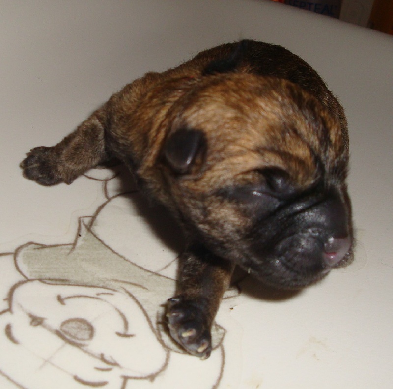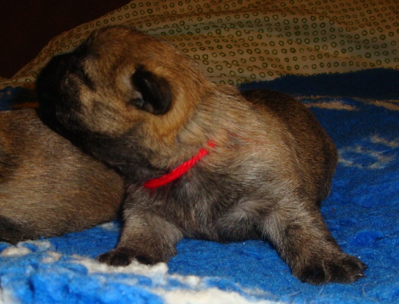 Très beau, très bien construit, le plus clair de la portée. Très vif d'esprit. Très belle évolution. Belle morphologie et très bon caractère pour les expositions et compagnie bien sûre.